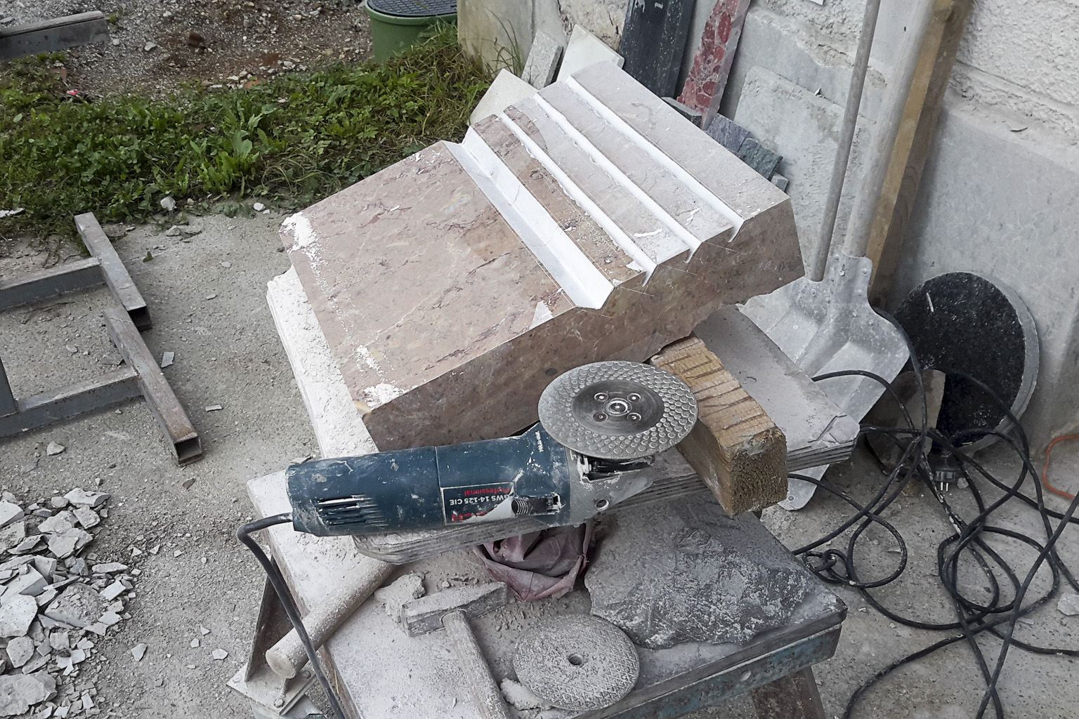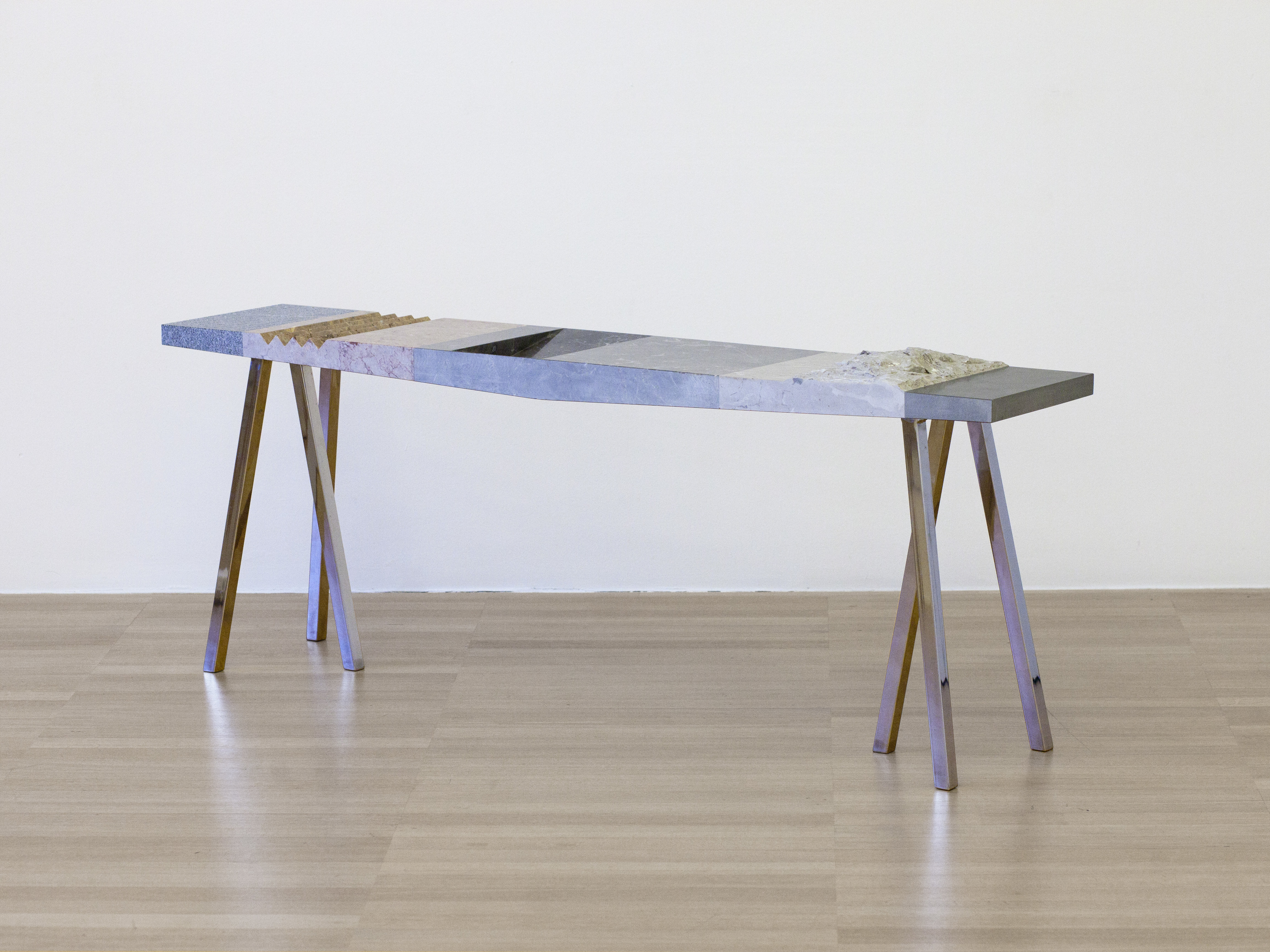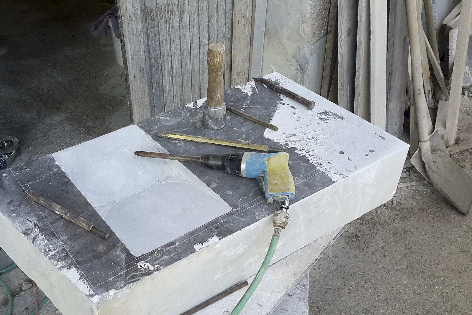 The sidetable KAMNINE was designed for BIO 50 - 24th Biennial of Design Ljubljana 2014 in close collaboration with the local stone mason Beno Ogrin. The sideboard is made from various types of natural slovene stone. It can be seen as a cross section through Slovenia's stone landscape on one hand but also through the craft of stonemasonry on the other hand.